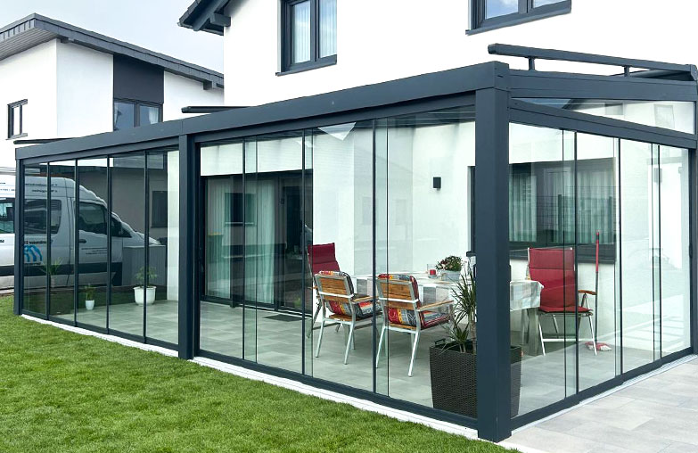 Schaffen Sie einen geschützten Bereich, der Ihre Terrasse bei jedem Wetter nutzbar macht – stilvoll, robust und individuell anpassbar.